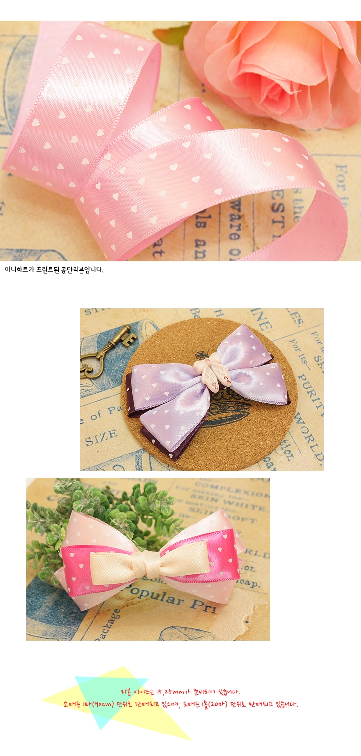 핑크공단/흰색(미니하트 프린트) > 하트프린트