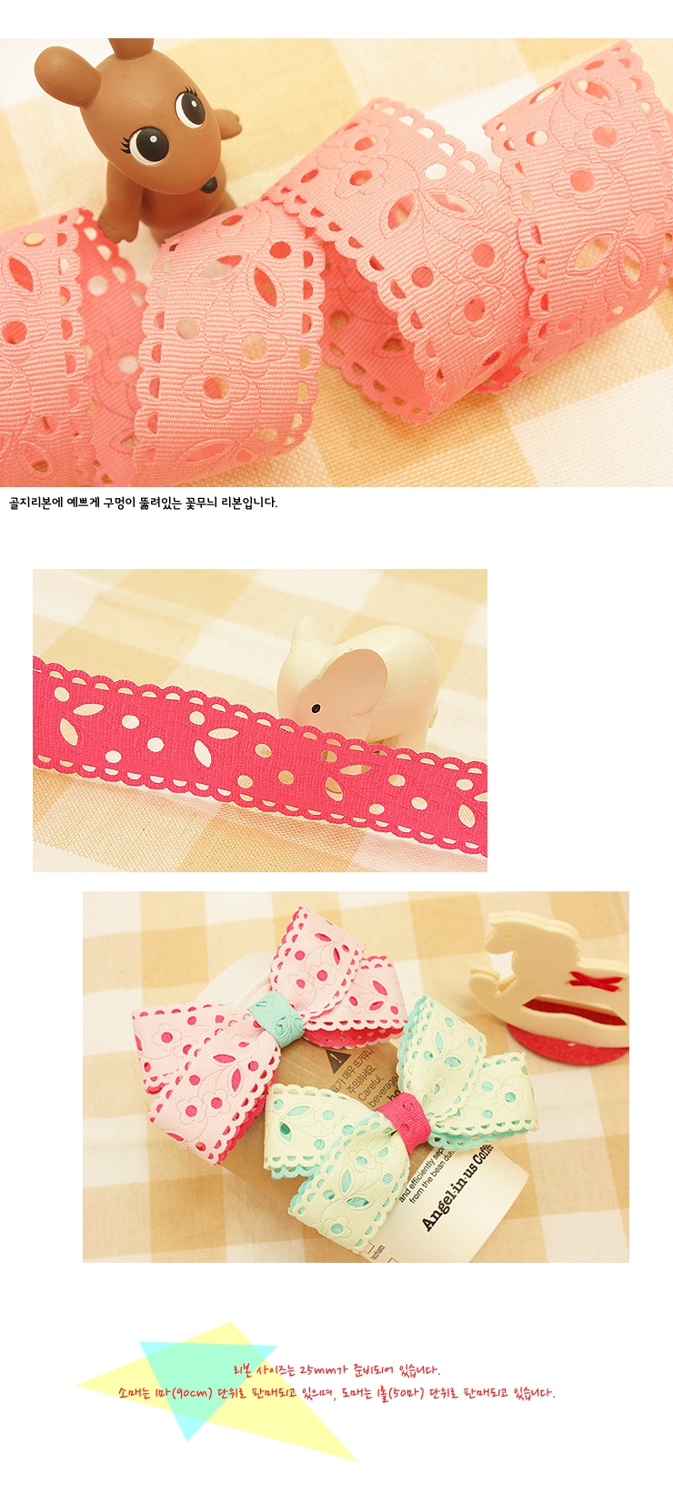 연핑크/꽃무늬 펀치(초음파리본) > 초음파리본