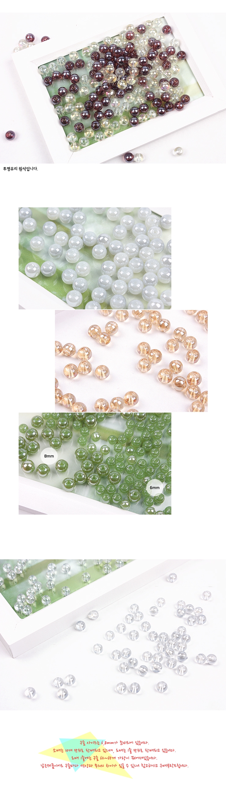 무지개/투명유리(원석)-10개 > 6mm 알장식