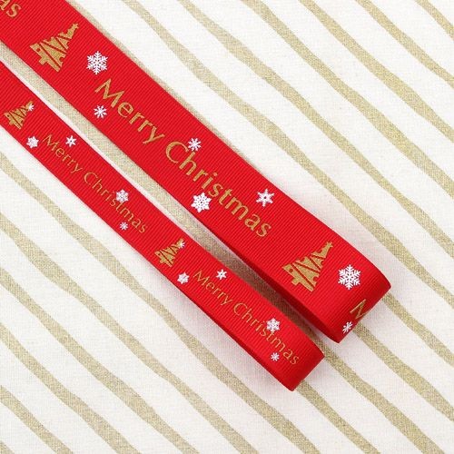 빨강색/골드영문트리골직리본(크리스마스리본) > 크리스마스리본